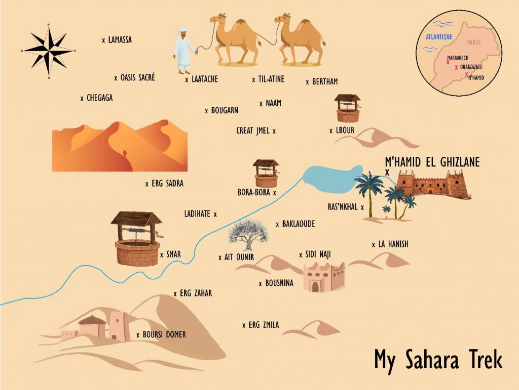 Voyageur solitaire, couple ou famille avec des enfants, vous êtes les bienvenus pour vivre une expérience de vie nomade, puis visiter le Sahara sauvage dans le désert de M’hamid.